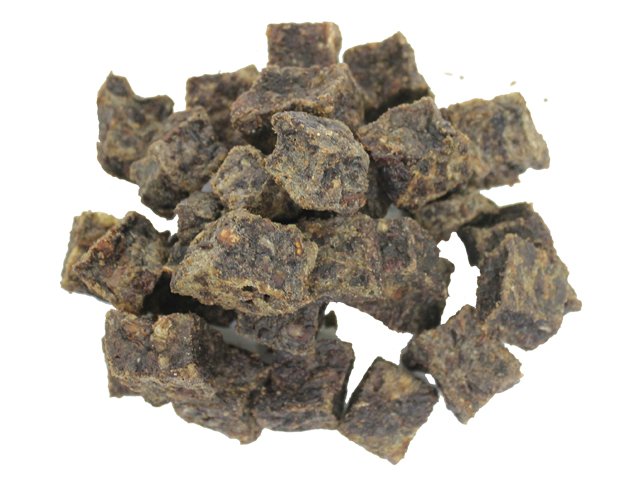 Tikki lammetern er lavet af tørret lammekød, der efter tørringen er skåret ud i små tern. Ternene er ca. 2x2x1,5cm.