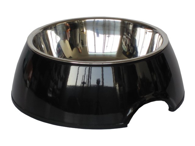 Med til melaminskålen følger en rustfri stålskål, som passer i. Det betyder, at du nemt kan tage stålskålen op, når der skal fyldes op med vand eller mad.